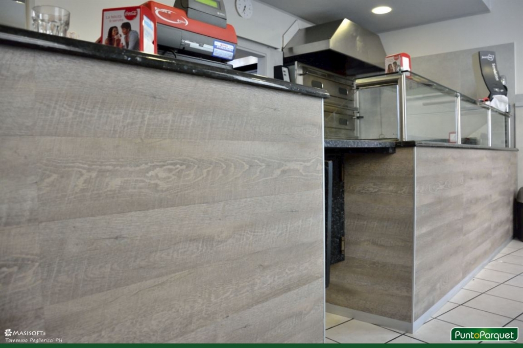 Il cliente aveva bisogno di rinnovare i rivestimenti delle pareti e dei banconi del suo locale commerciale-pizzeria, ormai demodé ed usurati, per donare un nuovo look all'ambiente, pulito ed elegante.